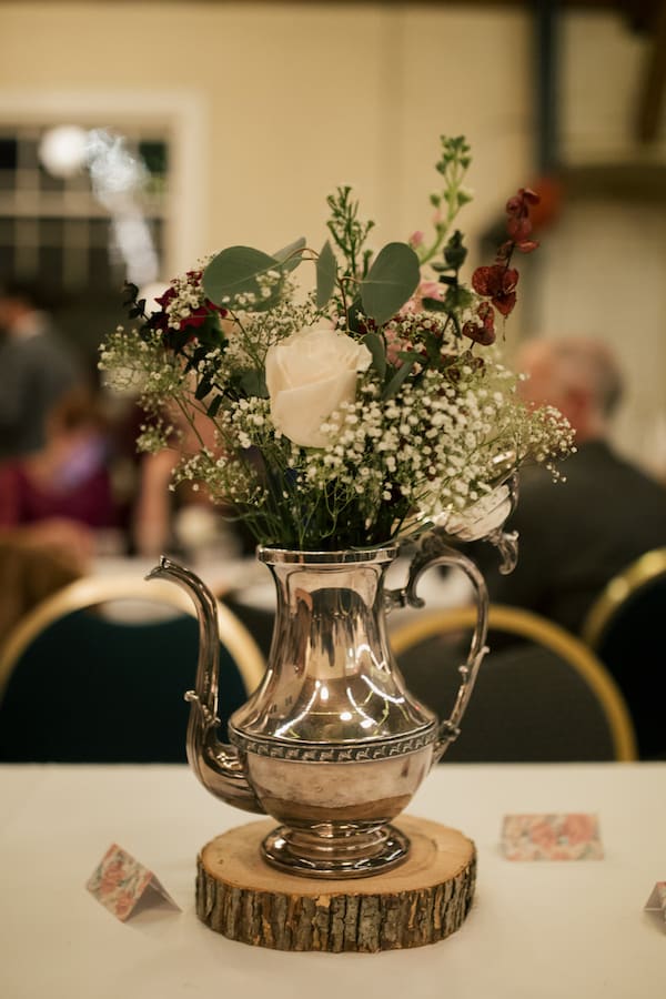 Our bride shares with us on her wedding day florals. “I decided to do the florals myself by ordering from Blooms By The Box, and once they arrived, it was a team effort to bring it all together. Each of my bridesmaids made their bouquet, my mom and her friends tackled the reception centerpieces, and a friend who is a florist helped me make my bouquet and prep the flowers.”