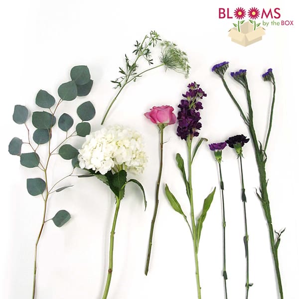 Our pack is chalk-full of lush purple wholesale flowers including stock, roses, carnations, statice, white hydrangeas, Queen Anne’s lace, and silver dollar eucalyptus. Many favorites in this pack are customizable so that it can be fitted into your personal style! The stark whites of the hydrangeas against the memorizing violets of the other flowers will have you falling in love with this pack!