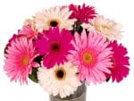 Daisies make everyone smile! Gerbera daisies add cheerfulness to any space and symbolize sincerity. Pompon daisies and gerbera daisies have many meanings. The overall sense of daisies is innocence, purity, new beginnings, and true love. Gerbera daisies express cheerfulness and grow in assorted varieties with big blooms.