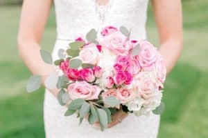 A common question we get here at blooms is “there are no flowers in my color palette, what should I do?” and our answer is usually the same, you can’t go wrong with all white flowers. In addition, you can always add pops of metallic throughout or use vases to incorporate your colors! Colors such as navy blue, turquoise, gold, silver, and, black can be very difficult to find matching flowers for. For these options, white flowers with greenery is always a good choice! You can’t go wrong with a classic white flower. you can choose your style with more traditional looking roses, hydrangeas, calla lilies, and lisianthus or make a more loose, organic, bohemian feel using queen anne’s lace, spray roses, larkspur, and ranunculus.