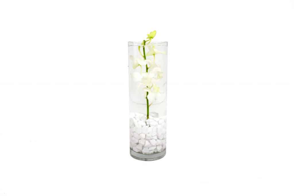 If you’re looking for a simple, elegant and cost-effective centerpiece, consider a submerged Orchid centerpiece! Orchids come in a crisp white, as well as a wide range of vibrant colors that look fabulous floating in water. The key is to use a very clean, glass vase and some decorative stones, rocks, or crystals! Learn how to make this submerged Orchid centerpiece in this step by step video.